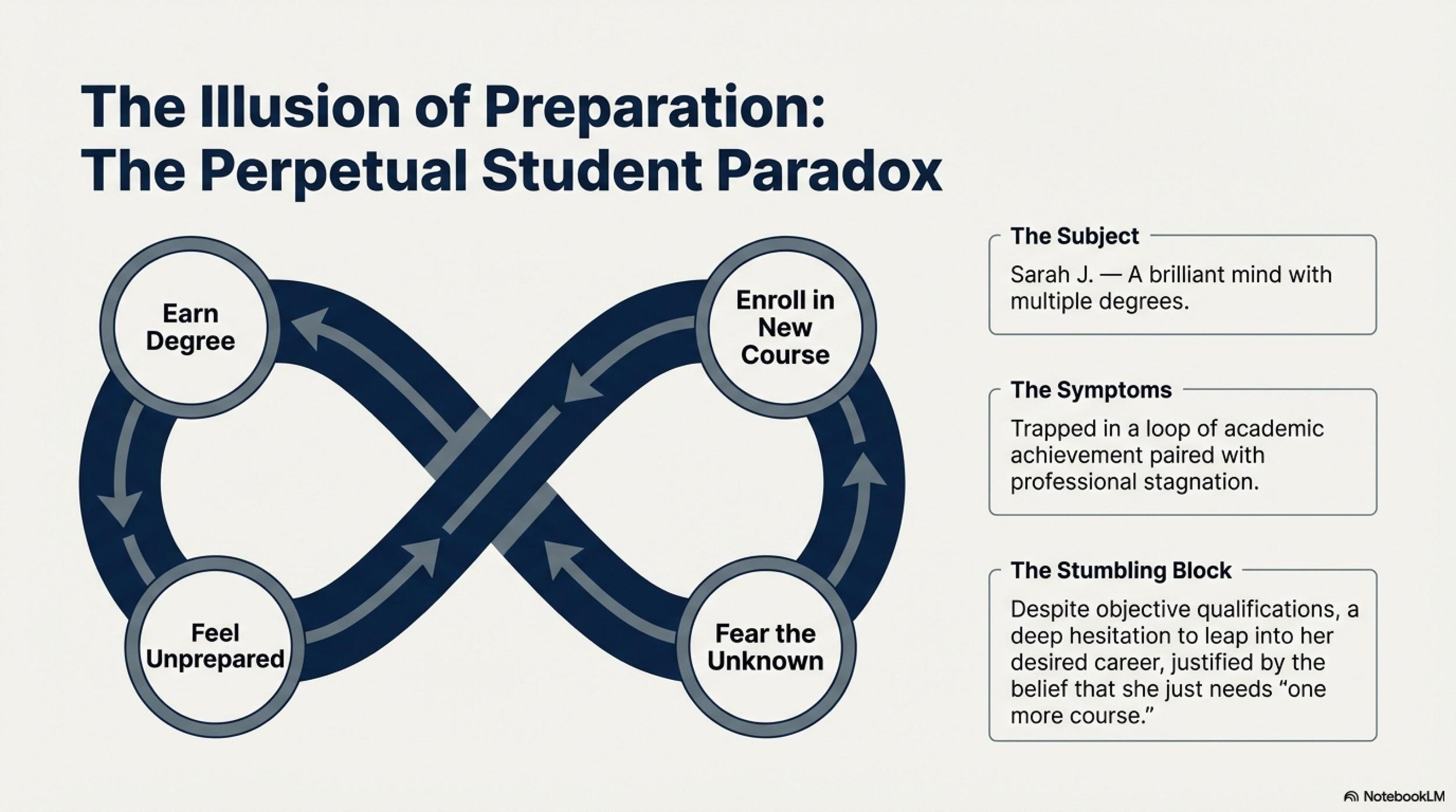 Sarah J., a brilliant mind with multiple degrees, found herself in a loop of academic achievement but professional stagnation. Despite her qualifications, she hesitated to take the leap into her desired career, always feeling she needed 'one more cou...